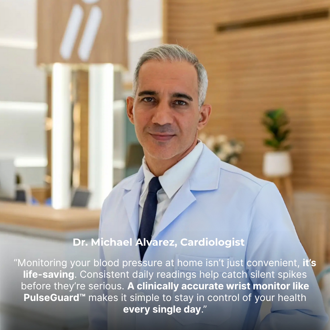 Yes — PulseGuard™ is clinically validated and developed alongside cardiologists. It uses advanced wrist-sensing technology proven to deliver results comparable to hospital-grade arm monitors.
